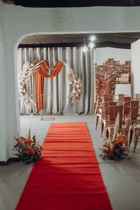 We do the wedding reception in our beautifully draped with greenery bespoke detailed and fully fairy lit Lapa of up to 50 people with a dance floor. We also offer a customized set- up in our authentic industrial space ‘ The Garage’ which will be set as a chapel for your nuptials.